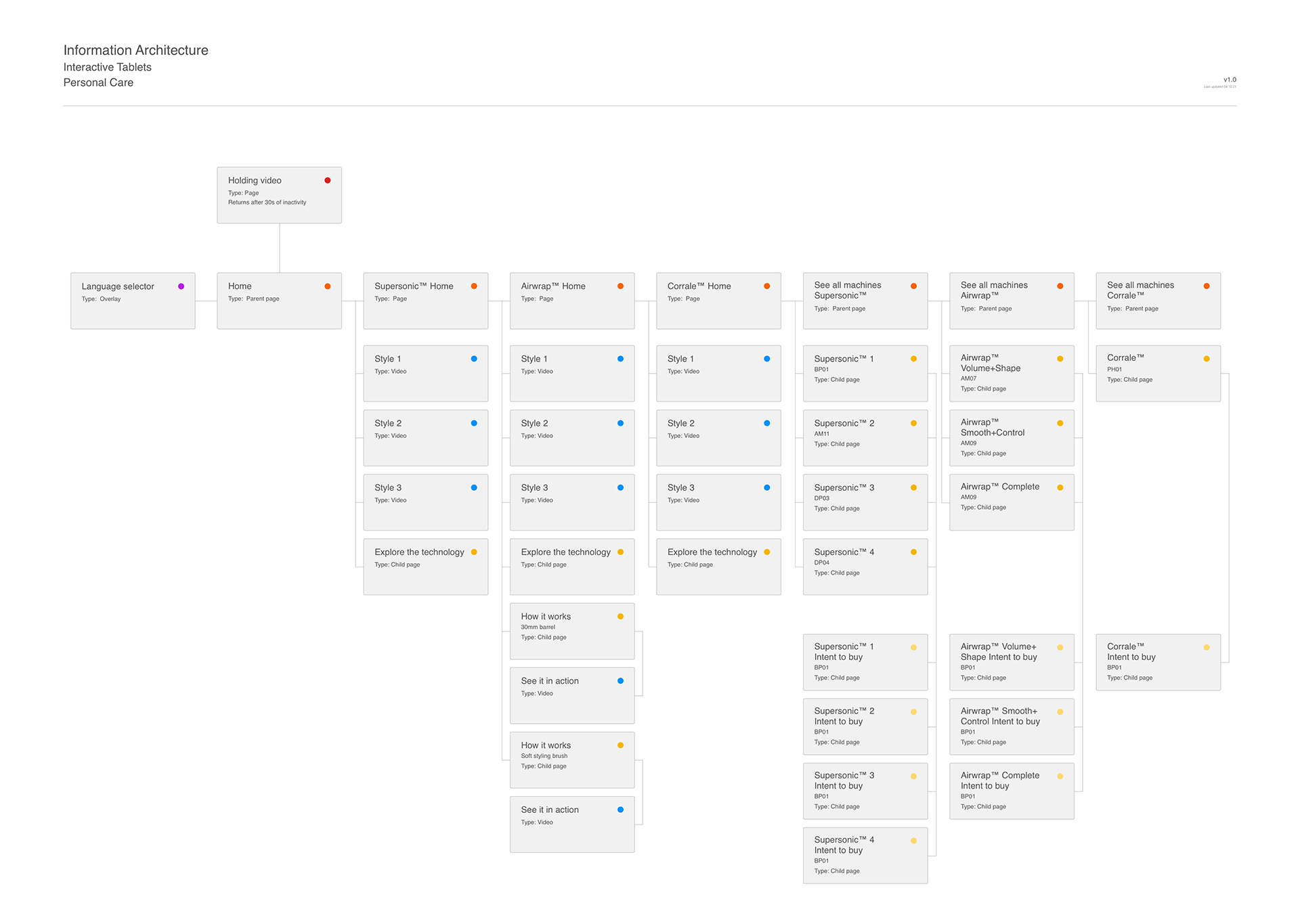 To support Dyson’s expansion into physical retail, I led the development of a connected in-store experience that bridges physical product interaction with digital education. We created an intuitive touchscreen application and a large-scale LED content strategy that transforms the store into both a showcase and a learning environment. The result is a seamless, product-first experience where customers can explore and understand complex engineering through guided digital interaction.